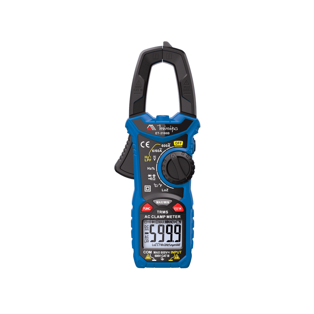 Alicate Amperímetro Digital: 3 5/6D – CAT III 600V – Corrente até 600A / Teste de NCV / Temperatura / LoZ - ET-3166B