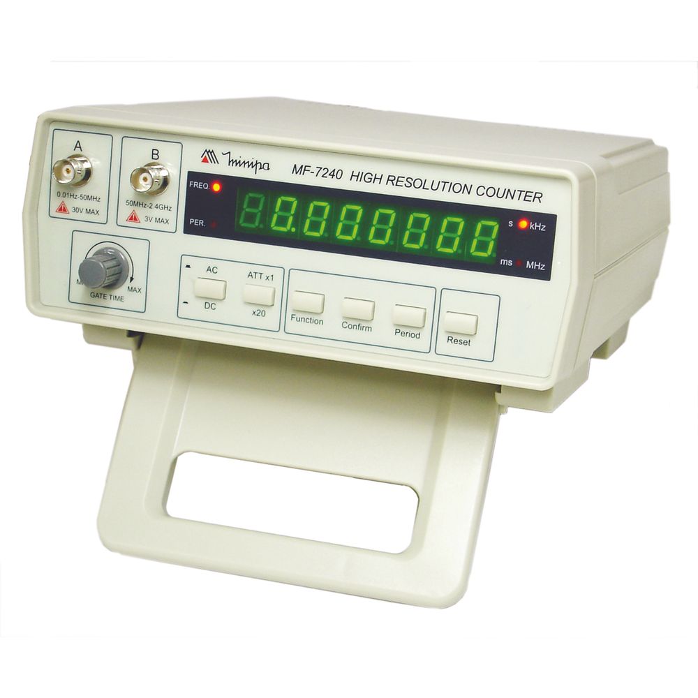 O Frequencímetro 2,4 GHz - MF-7240 é uma ferramenta essencial para profissionais que necessitam medir frequências com precisão. Com um display de 8 dígitos em LED, ele proporciona uma leitura clara e fácil, ideal para ambientes de trabalho. O canal A opera na faixa de 0,001Hz a 50MHz, enquanto o canal B abrange de 50MHz a 2,4GHz, permitindo uma ampla gama de medições.