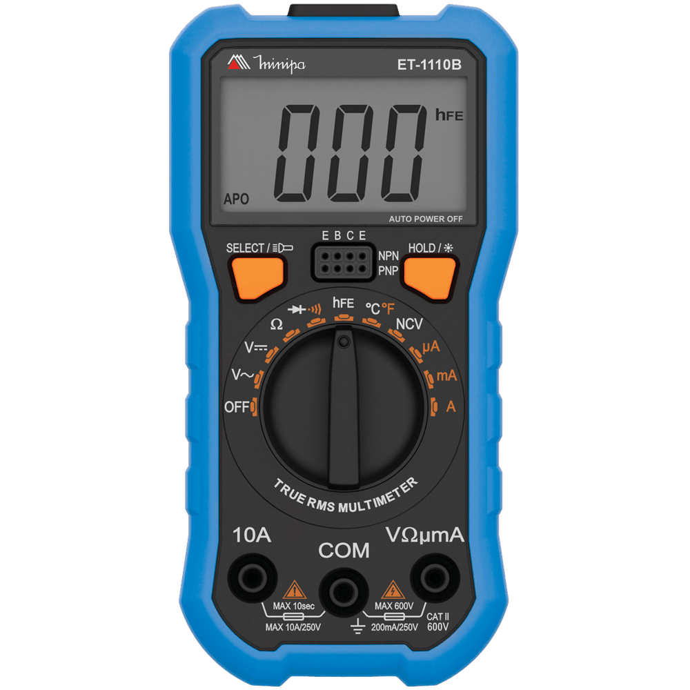 O Multímetro Digital 3½D ET-1110B é uma ferramenta essencial para profissionais e entusiastas da eletrônica. Com a capacidade de medir corrente AC/DC, tensões AC/DC, resistência e temperatura, este dispositivo se destaca pela sua versatilidade. Além disso, ele oferece funções de teste de diodo, continuidade e transistor hFE, tornando-o ideal para uma ampla gama de aplicações.